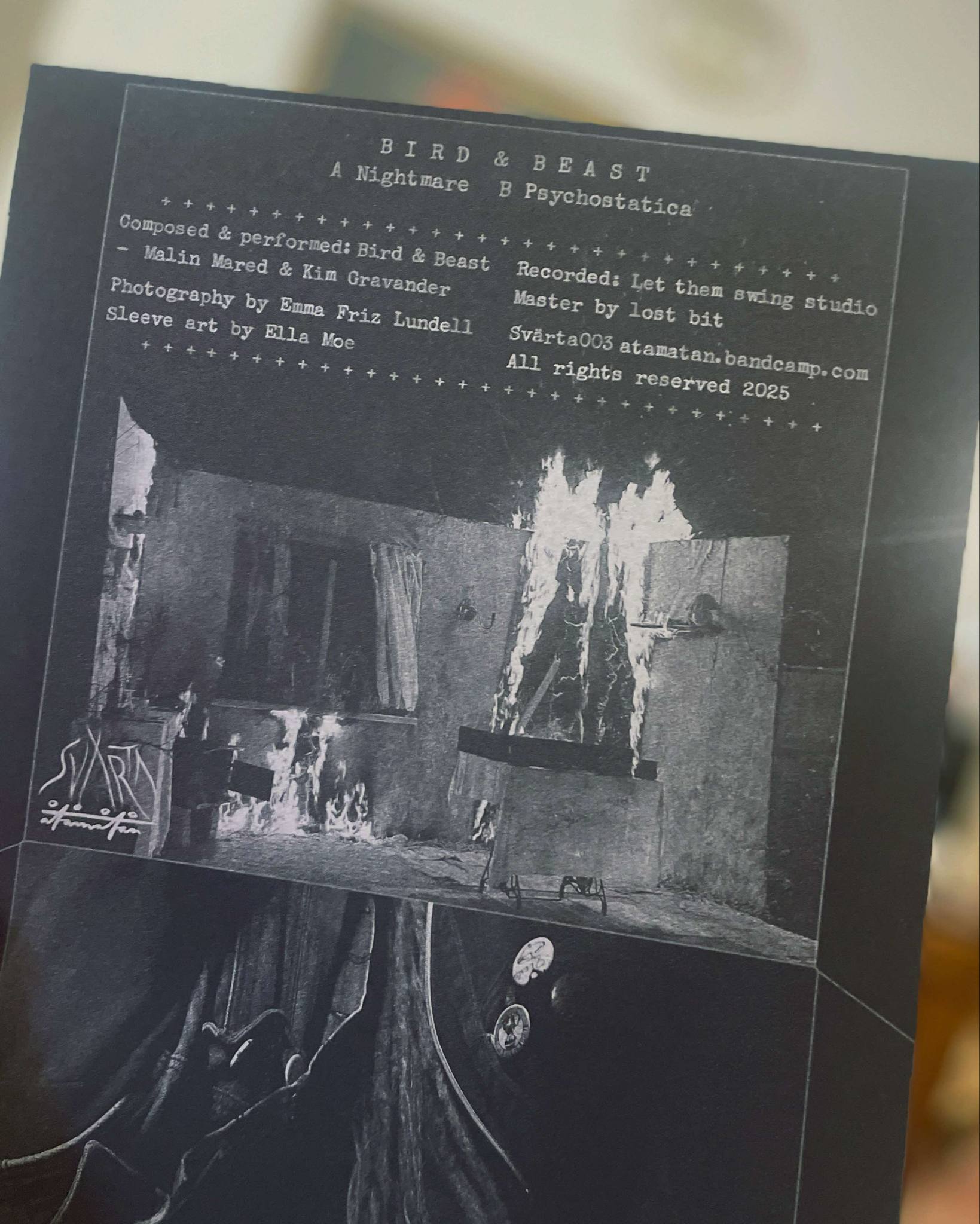 Sleeve art for SVÄRTA003: Bird & Beast - Nightmare/Psychostatica 7”, 2025.