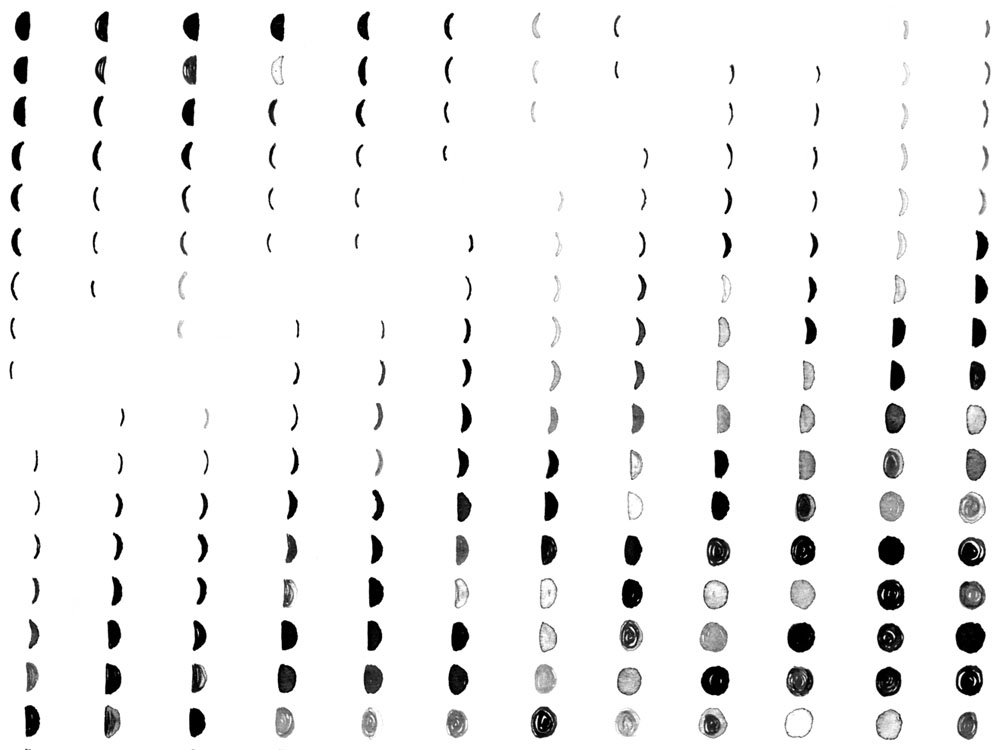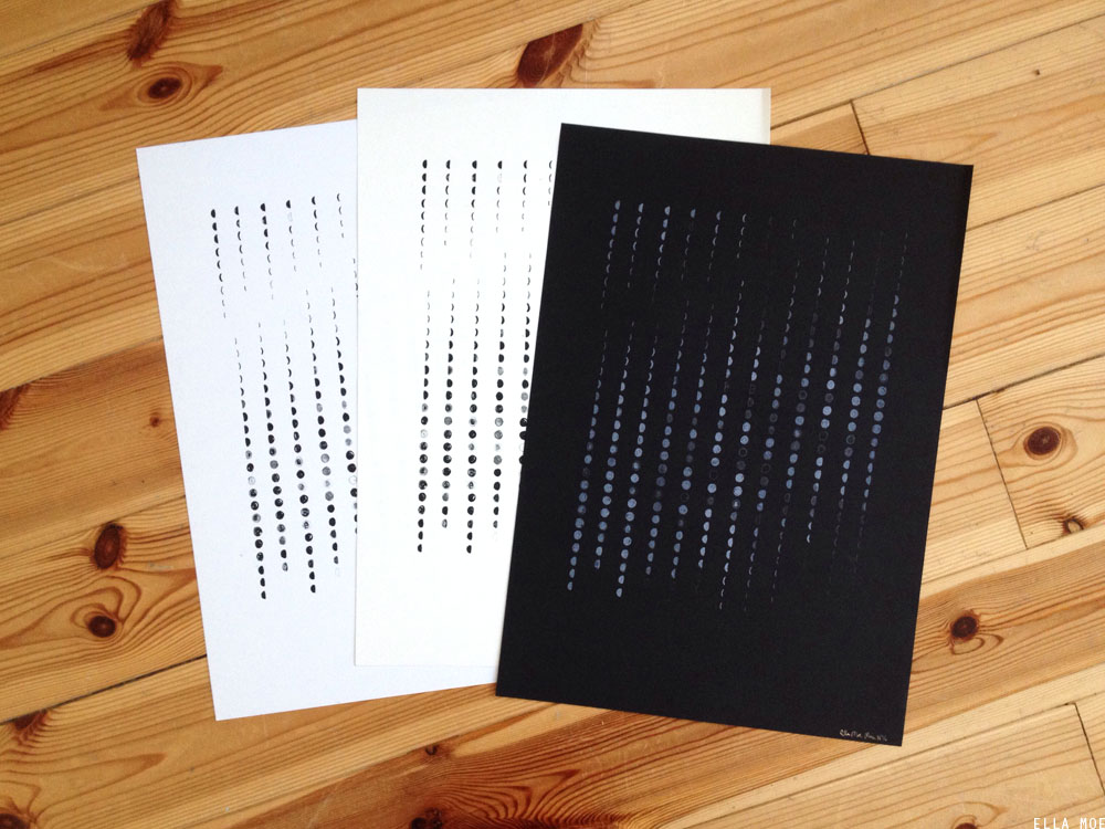 2013-18 I made and sold Moon Calendars in my then illustration shop. Originally ink painted, som were custom made and others Risograph printed.