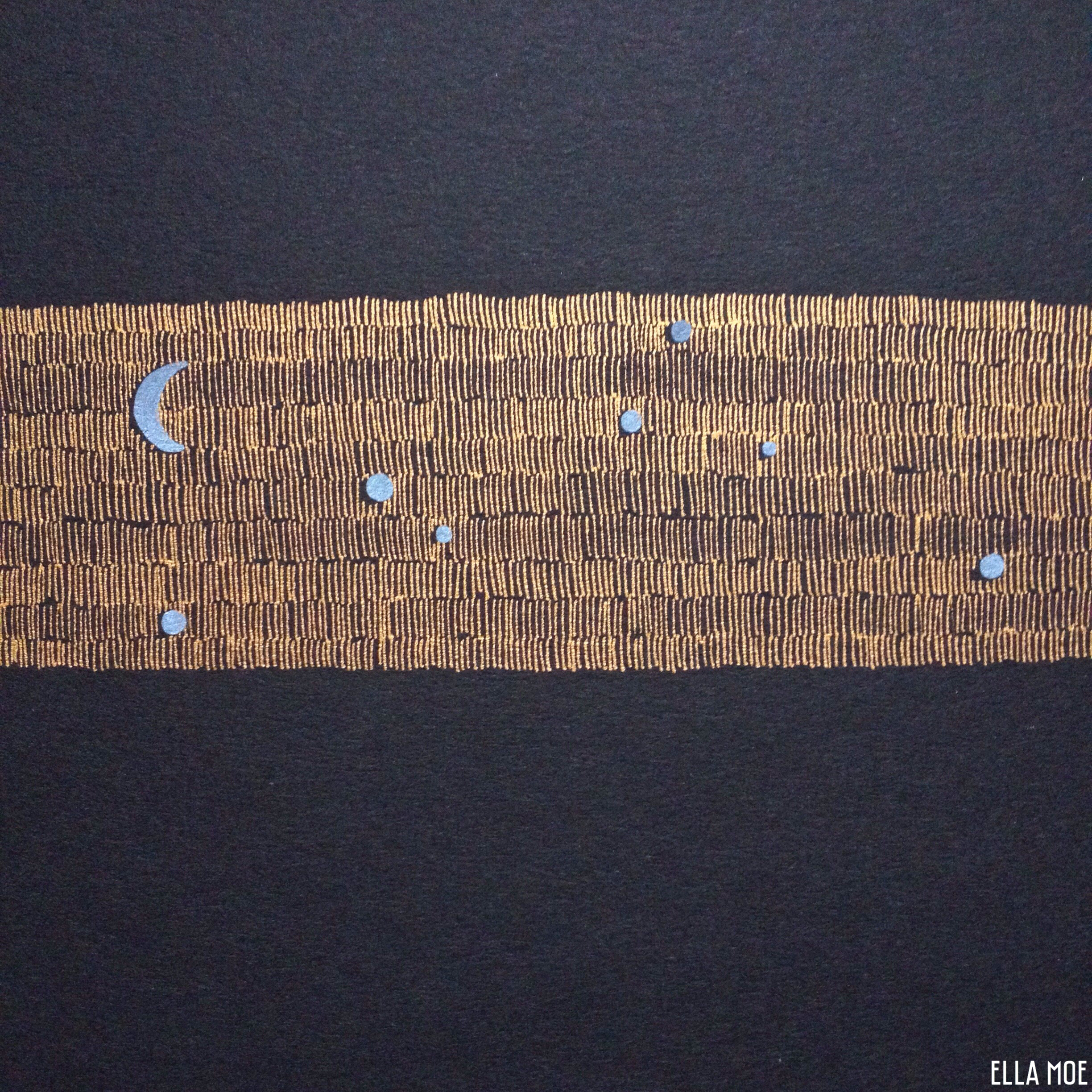 Illustration for my then print shop. Drawn by hand and Risograph printed in metalic gold on black with hand drawn details in white, 2016.